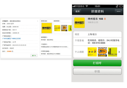 Location Surround Push(基于附近的人的消息推送)微信中基于LBS(基于位置的服務)的功能插件“查看附近的人”便可以使更多陌生人看到這種強制性廣告。 用戶點擊“查看附近的人”后,可以根據自己的地理位置查找到周圍的微信用戶。在這些附近的微信用戶中,除了顯示用戶姓名等基本信息外,還會顯示用戶簽名檔的內容。所以用戶可以利用這個免費的廣告位為自己的產品打廣告。 營銷人員在人流最旺盛的地方后臺24小時運行微信,如果“查看附近的人”
